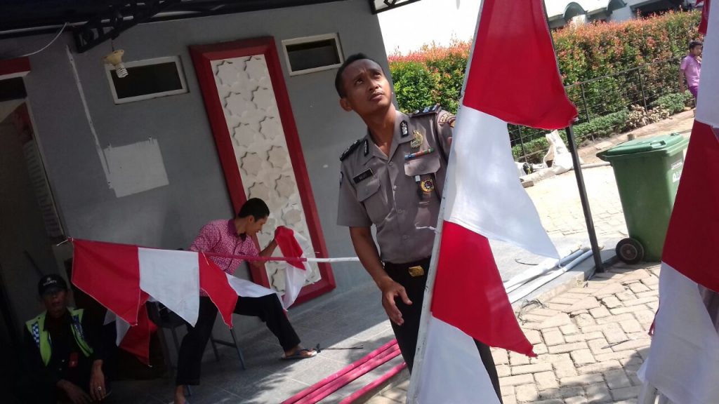Bhabinkamtibmas Kel Gunung Batu Aiptu Waluyo bersama Babinsa kel Gunung Batu dan pengurus sekolah Insan Tama Hegarmanah Gunung Batu memberikan motivasi kepada para pelajar dan guru untuk memasang umbul-umbul serta simbol negara di lingkungan sekolah sebagai ungkapan rasa dalam menyambut dan menyemarakan HUT Kemerdekaan Negara Republik Indonesia yang ke 72 .