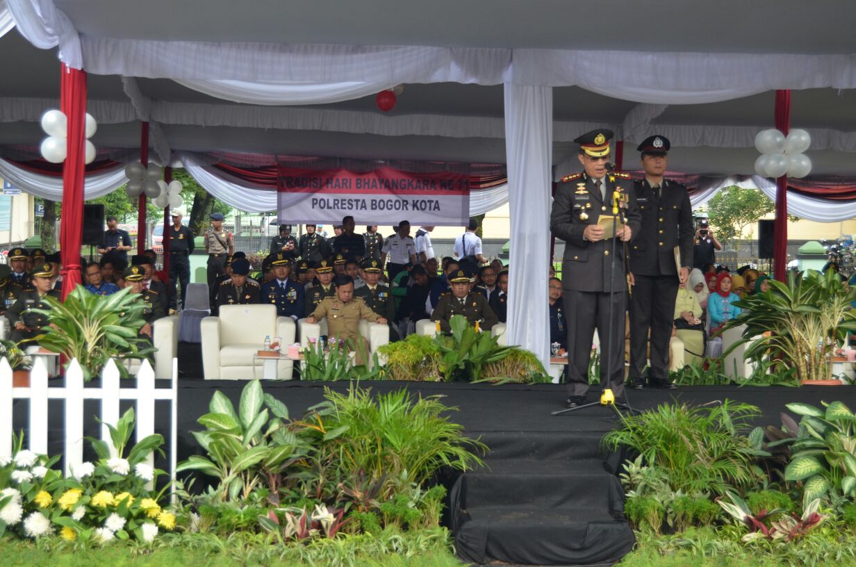 Kapolresta Bogor Kota Kombes Pol Ulung Sampurna Jaya, S.I.K,M.H bertindak sebagai Inspektur Upacara, dihadiri oleh Walikota Bogor Dr. Bima Arya Sugiarto, Wakil Walikota Bogor Ir.Usmar Hariman, Ketua DPRD Kota Bogor Untung Maryono, Sekda Kota Bogor Ade Syarif, Ketua Kejaksaan, Ketua Pengadilan, Ketua MUI, Danrem 061/Suryakencana Kolonel Inf Mirza Agus, Dandim 0606 Kota Bogor Letkol Arm Syaiful,SE,Dan Den Pom Letkol CPM Indra Jaya, Dan Lanud Atang Sanjaya, Dan Yonif 315.