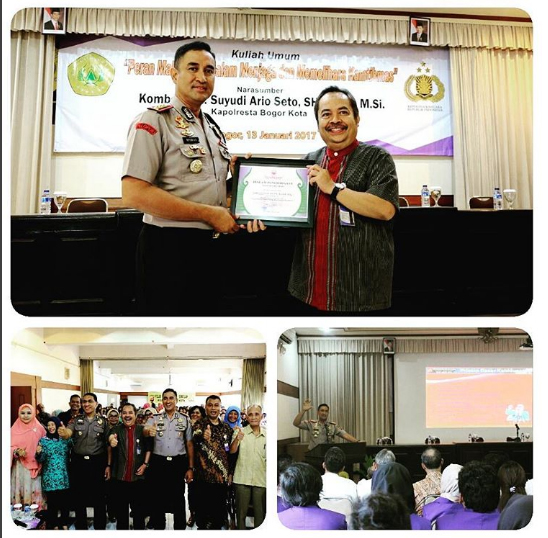 Kapolresta menyampaikan bahwa mahasiswa mahasiswa adalah salah satu agen pembawa perubahan diharapkan mahasiswa dapat berperan aktif dalam menjaga keamanan dan ketertiban di masyarakat kota bogor
