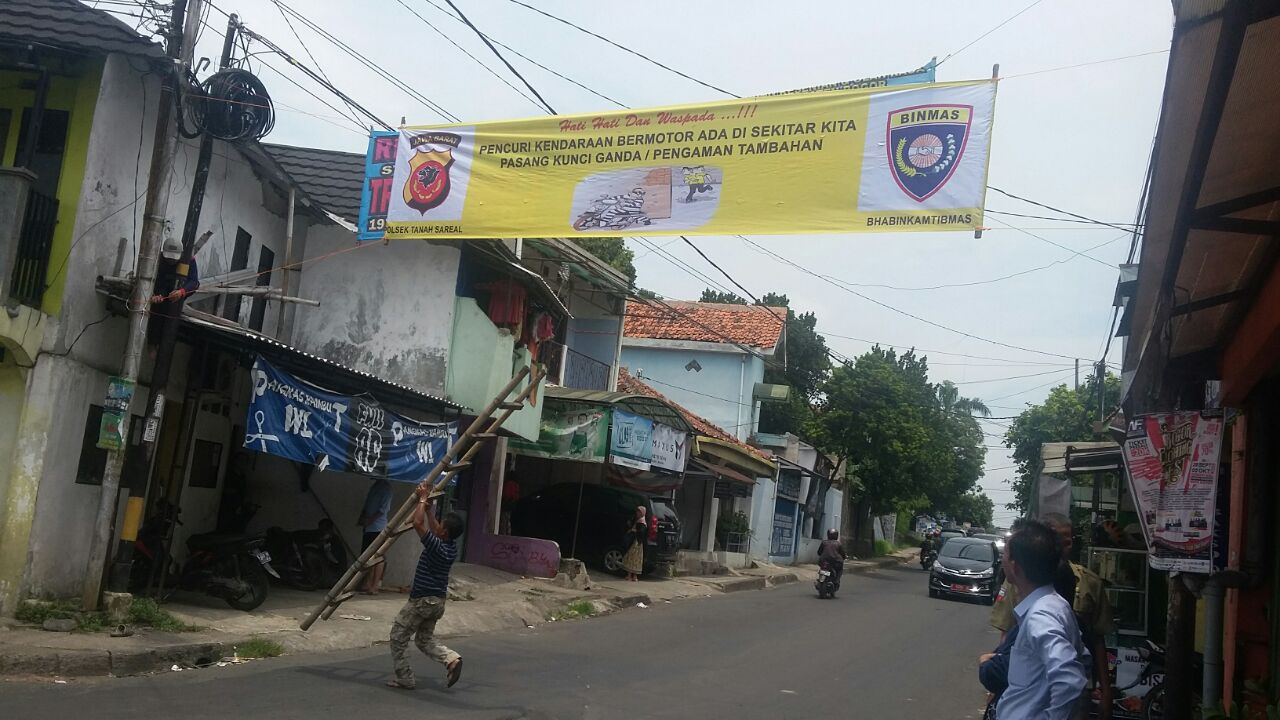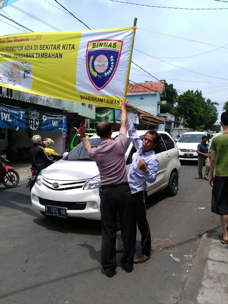 Polres Bogor Kota – Untuk memberikan himbauan dan peringatan akan suatu tindak kejahatan Jajaran Bhabinkamtibmas di tiap kelurahan Kecamatan Tanah Sareal bersama-sama warga melaksanakan kegiatan pemasangan spanduk himbauan yang berisi pesan kamtibmas dan himbauan waspada kejahatan.