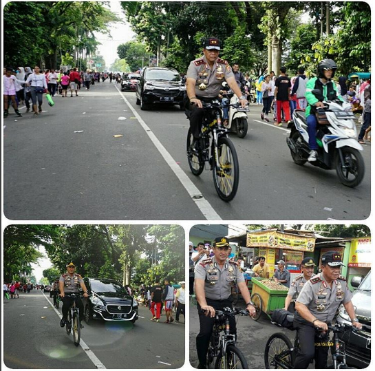 Tak hanya itu, Kapolda Jawa Barat Irjen Pol. Anton Charliyan turun langsung memamntau jalannya kegiatan didampingi oleh Kapolresta Bogor Kota Kombes Pol. Suyudi Ario Seto, SH, S.I.K, M.Si, dengan menggunakan sepeda Gowes Kapolda sesekali menyapa masyarakat Bogor yang sedang melaksanakan kegiatan Car Free Day, sesekali beliau berhenti untuk menyicipi dan bersilaturahmi dengan pedagang-pedagang kecil yang berada di Kawasan Car Free Day.