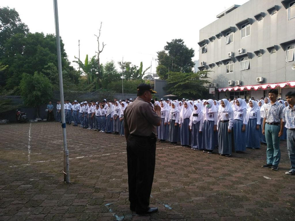 Polresta Bogor Kota – Kapolsek Bogor Selatan Kompol Riyanto bersama Kanit Binmas Akp Darwati melaksanakan kegiatan Polisi Masuk Sekolah di SMK Bina Informatika Jl.Pahlawan tadi pagi (01/08)