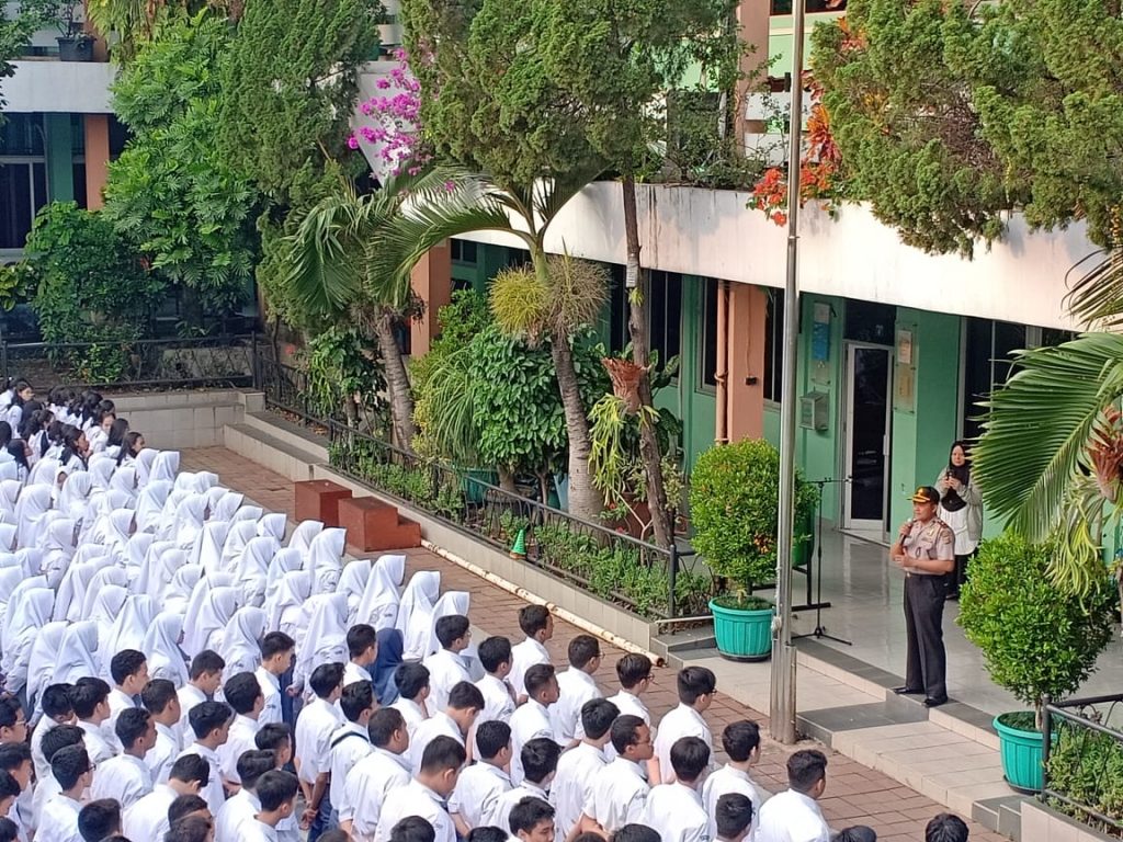 Kompol Marsudi Widodo memberikan arahan kepada siwa/siswi SMA 3 Kota bogor