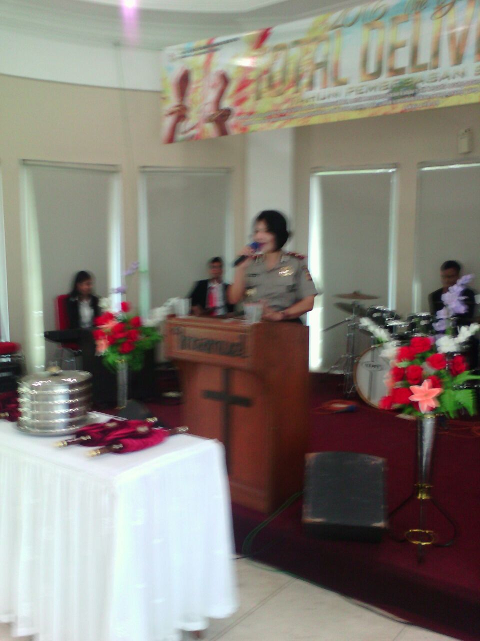 Kapolsekta Bogor Barat atas ijin dan keinginan dari jemaat yang hadir memberikan Warta Jemaat ( tausyiah) sebelum dilaksanakan acara pokok Perjamuan Kudus dimulai.