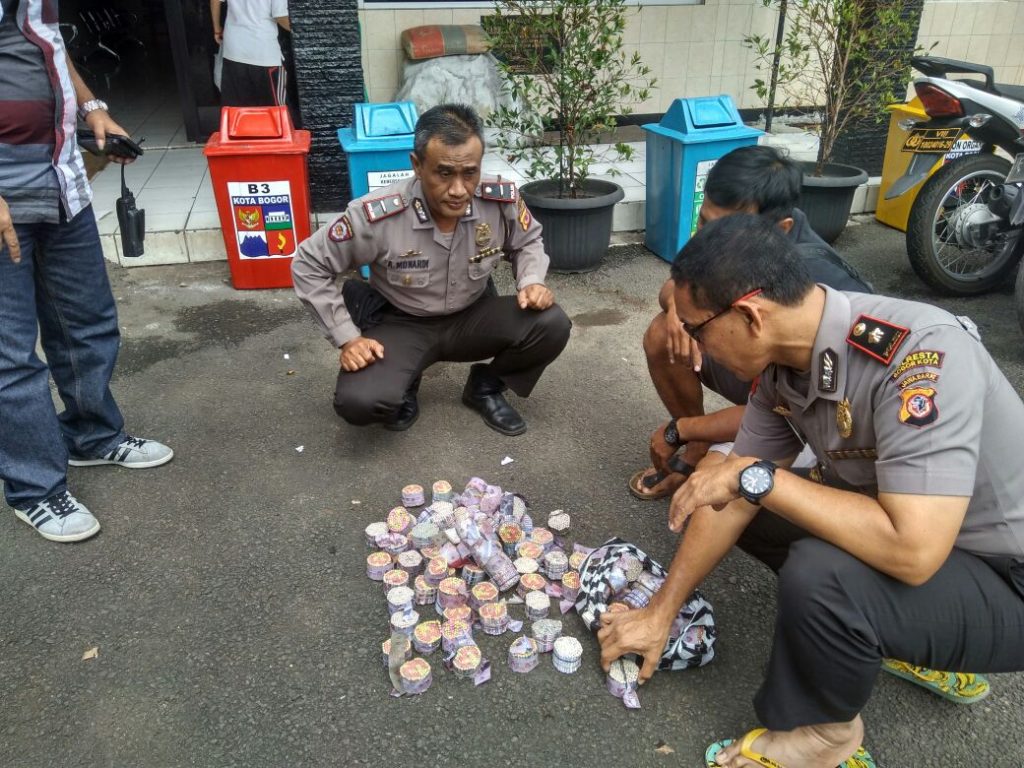 Dari pedagang An.KOHARUDIN Bin MAMAN NURYAMAN , 26 thn, Almt Gunung Batu 4/14 Bogor Tengah Bogor , yg berjualan di Pasar Asem Kel. Ciwaringin Kec. Bogor Tengah Kota Bogor , telah disita 100 ( seratus ) ikat petasan kecil dan masing2 isi 100 butir jadi jumlah 100×100 = 10.000 butir petasan kecil.