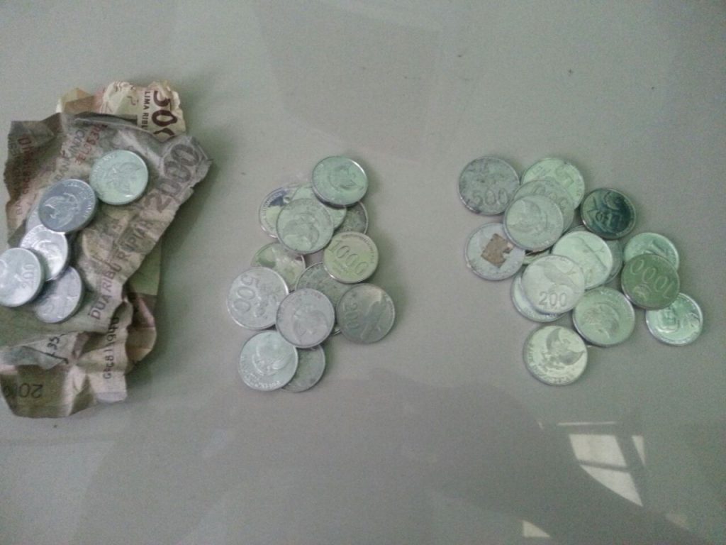 Barang bukti yang diamankan uang receh sebesar Rp. 45.000