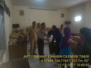Humas Polresta Bogor Kota: Bhabinkamtibmas Kelurahan Cilendek Timur, Kecamatan Bogor Barat, Kota Bogor Aiptu Endang Supriatna Selasa siang (21/11) memonitoring kegiatan pembagian RASTRA berupa Beras sebanyak 15 Kg, Gula pasir 1 Kg, Minyak Goreng 1 Kg di aula kantor Kelurahan Cilendek Timur.