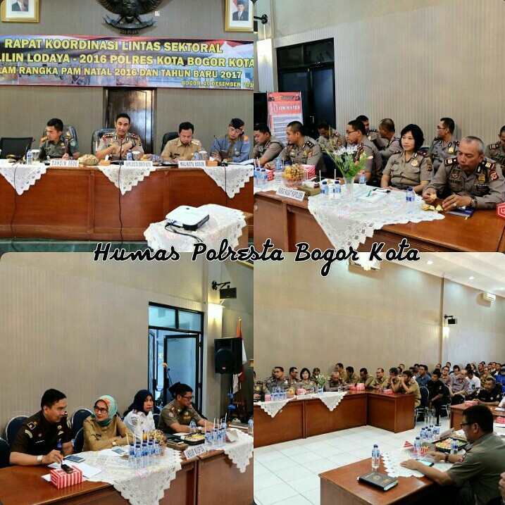 Rapat koordinasi lintas sektoral yang dipimpin oleh Kapolresta Bogor kota ini dihadiri oleh para undangan yang terdiri dari pemerintah kota beserta SKPD jajarannya, dewan gereja, ormas, LSM potensi masyarakat dan kepemudaan yang nantinya dilibatkan dalam kegiatan operasi yang bertujuan untuk menciptakan situasi Kamtibmas yang kondusif saat perayaan Natal 2016 dan tahun baru 2017.