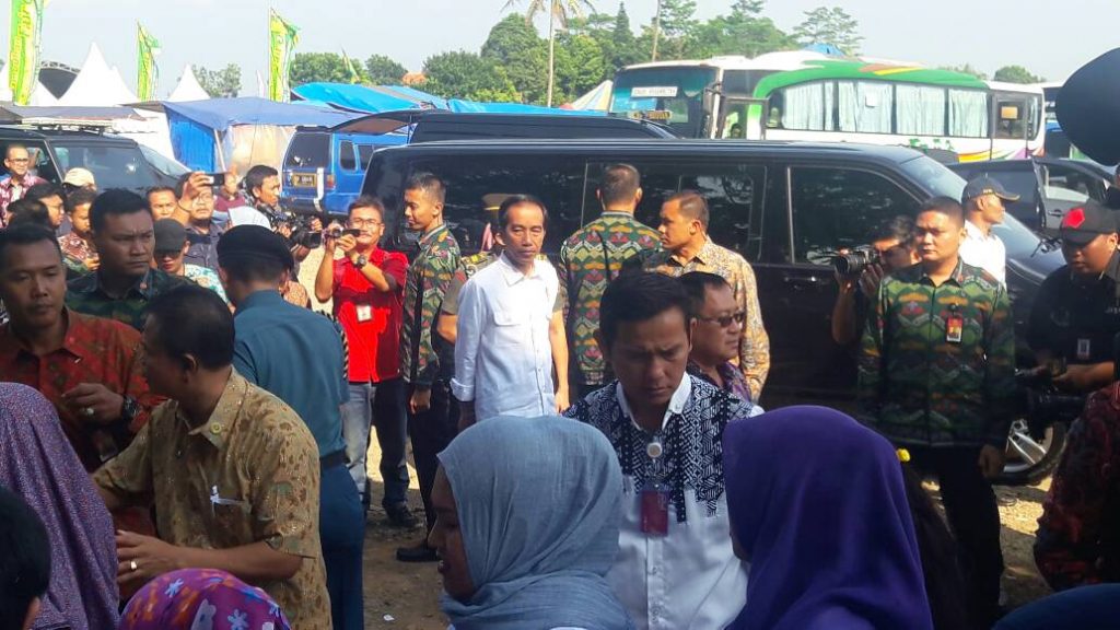 Kehadiran Bapak Joko Widodo didampingi Menteri PUPR Basuki Hadimulyono dan Seskab Pramono Anung.