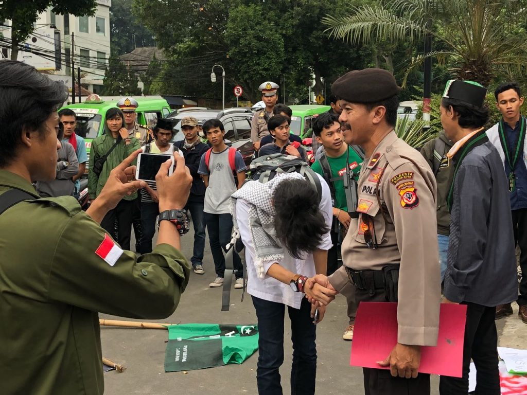 Polresta Bogor Kota – melaksanakan pengamanan kegiatan aksi dari Himpunan Mahasiswa Islam Rabu tanggal 23 Mei 2018 pukul 15.00 wib dimulai Kampus Uika – Tugu Kujang – BTM – Polresta Bogor Kota