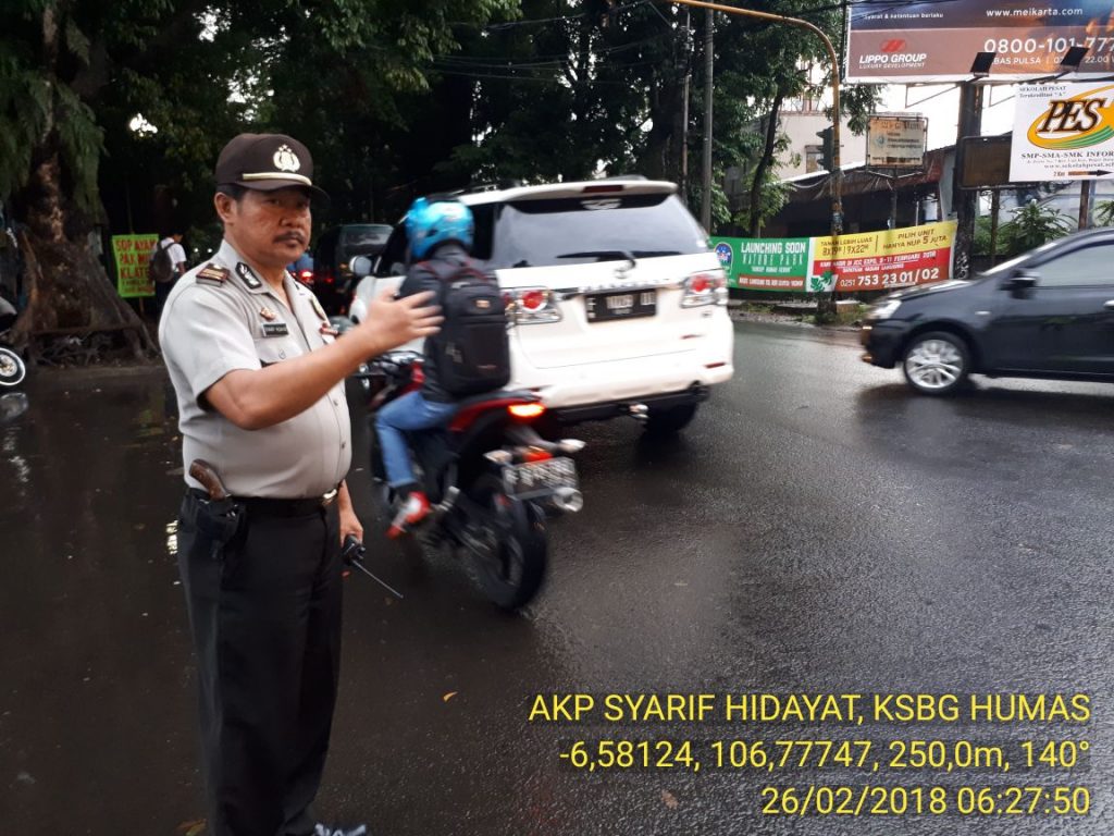 Seperti halnya pagi hari ini ( Senin/26/02 ) Jajaran personil Polsek Bogor Barat melakukan pengaturan dan penguraian arus lalu lintas dibeberapa titik rawan diantaranya, Simpang Semplak, Simpang Rsud Jln dr Semeru, Simpang Gunung Batu, Simpang Pancasan, Simpang Pasir Kuda. dan Jalur lintas Barat jln Raya Dermaga Bubulak