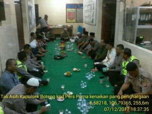 Sekedar diketahui adapun petugas yang purna tugas dari kepolisian republik Indonesia terhitung dari bulan ini, yakni Ipda Samsi, Ipda Juardin, Aiptu Kosasih, Bripka Nana, dan pegawai negeri sipil yakni Royani. Sementara untuk yang naik pangkat adalah Ipda Solihin naik golongan yang sebelumnya golongan bintara /gol II kini beralih jadi perwira pertama/ gol III penghargaan