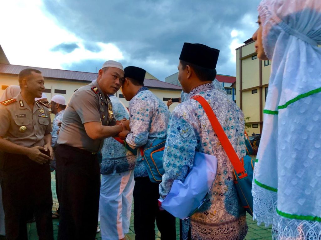Setelah selepas kegiatan Shalat subuh berjema’ah Kapolresta Bogor Kota dan wakapolresta Bogor Kota memimpin apel pelepasan Jema’ah Umroh yang akan berangkat.