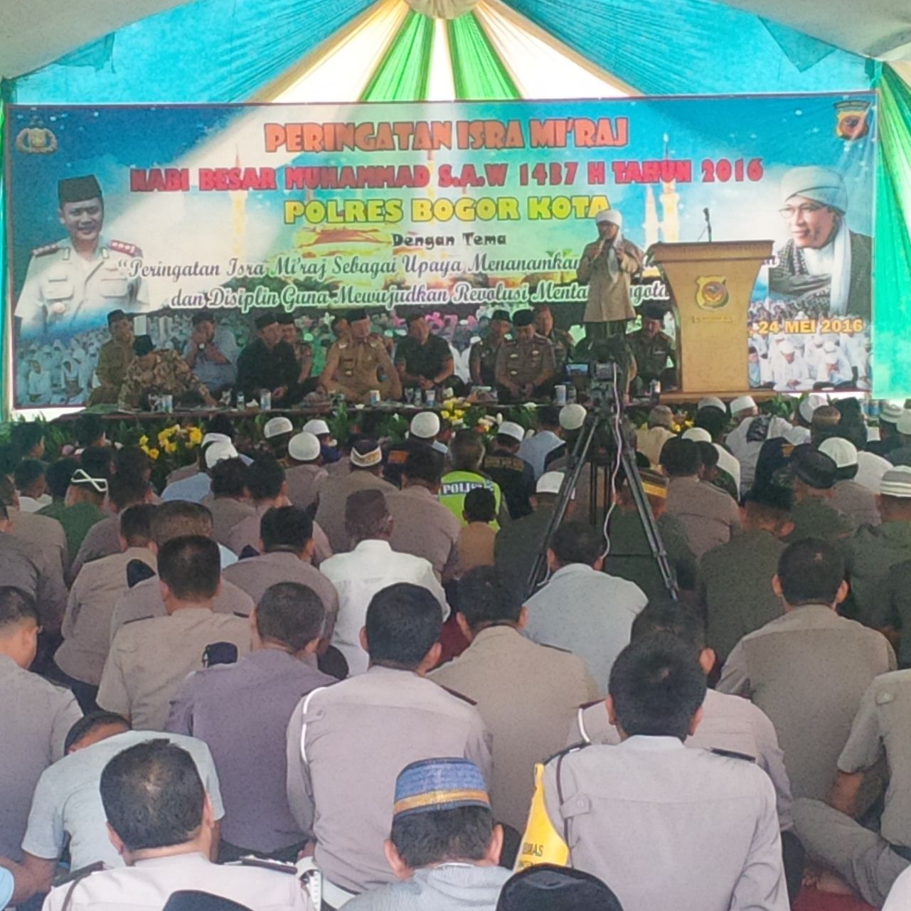 Polres Bogor Kota – Polres Bogor Kota pada selasa pagi (24/5/2016) menggelar acara peringatan Isra Mi’raj Nabi Muhammad SAW Tahun 2016 yang dilaksanakan di Lapangan Mapolres Bogor Kota dan dihadiri oleh para unsur Muspida Kota Bogor dan sebagai penceramah dalam acara tersebut yakni KH. Abdullah Gymnastiar atau biasa dikenal Aa Gym.